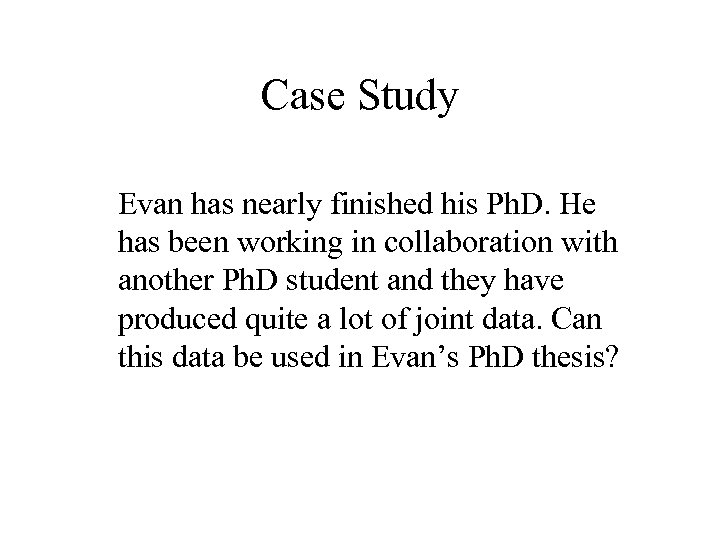 Case Study Evan has nearly finished his Ph. D. He has been working in collaboration with another Ph. D student and they have produced quite a lot of joint data. Can this data be used in Evan’s Ph. D thesis?