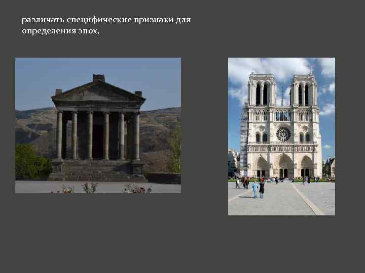 различать специфические признаки для определения эпох,
