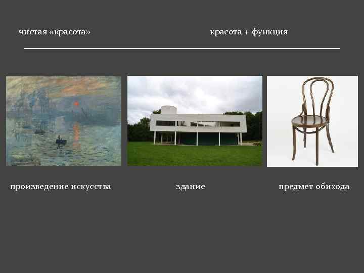 чистая «красота» произведение искусства красота + функция здание предмет обихода