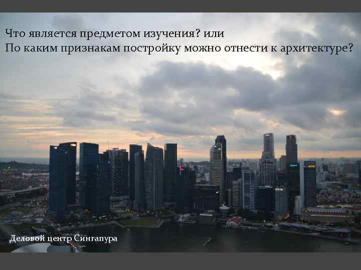 Что является предметом изучения? или По каким признакам постройку можно отнести к архитектуре? Деловой центр Сингапура