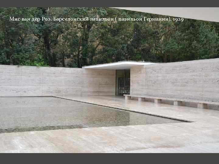 Мис ван дер Роэ. Барселонский павильон ( павильон Германии). 1929