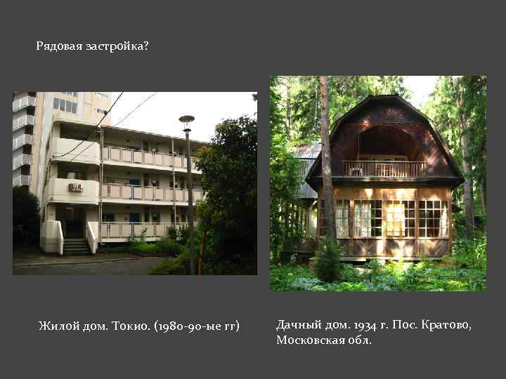 Рядовая застройка? Жилой дом. Токио. (1980 -90 -ые гг) Дачный дом. 1934 г. Пос. Кратово, Московская обл.
