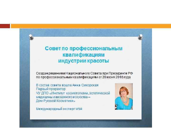 ПРОФЕССИОНАЛЬНЫЕ СТАНДАРТЫ В ИНДУСТРИИ КРАСОТЫ Анна Сикорская 2016