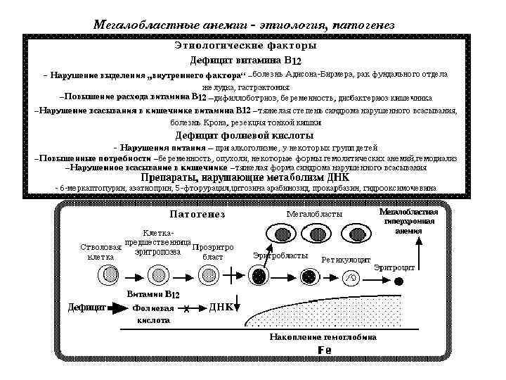 Раздел 3. Мегалобластные анемии (В 12 -, фолиеводефицитные) группа заболеваний, для которых характерны связанные с нарушением синтеза ДНК мегалобластное кроветворение и макроцитоз крови Основная причина: дефицит фолиевой кислоты и /или витамина В 12