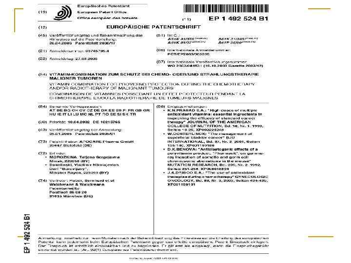 n n В ряде исследований проанализирована возможная взаимосвязь между обогащением рациона витаминами антиоксидантного действия с последующим обратным развитием предопухолевых изменений в толстой и прямой кишках. Так у больных, которые после эндоскопического удаления колоректальных полипов (стадия, предшествующая озлокачествлению) получали дополнительно витамины А, Е, С, частота рецидивов составляла 5, 7 %, в то время как в группе лиц, не получавших витамины - 35, 9 %.
