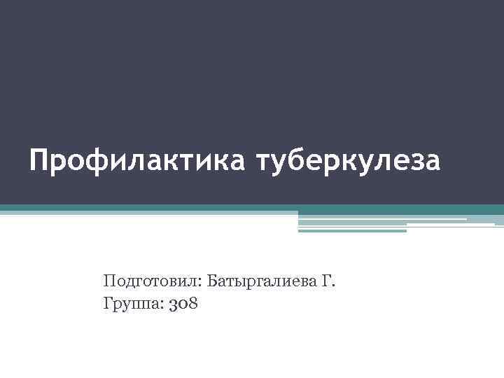 Профилактика туберкулеза Подготовил: Батыргалиева Г. Группа: 308