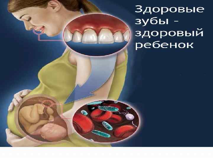 У беременных женщин, имеющих скрытые очаги инфекции, в 30% случаев наблюдается инфицирование плода. Кроме того, наличие кариеса зубов у матери означает его повышенный риск и у ребенка. В результате часто на первых же прорезывающихся зубах малыша развивается кариес. Поэтому очень важным является наблюдение беременной женщины, обследование ее на предмет предрасположенности к основным стоматологическим заболеваниям, раннее выявление и лечение кариеса зубов и воспалительных заболеваний пародонта, а также профессиональная гигиена полости рта и специфические профилактические мероприятия.