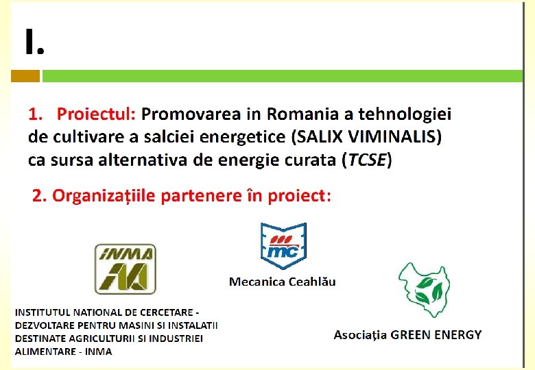 PROGRAM de ECOLOGIZARE a PRODUCTIEI de ENERGIE „Evaluarea, selectia si promovarea unor plante cu randamente ridicate de biomasa in culturi SRC (Schort Rotation Coppice) pentru producerea de energie din resurse regenerabile – “BIOENERG”.