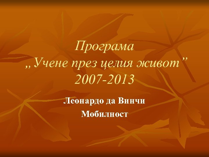 Програма „Учене през целия живот” 2007 -2013 Леонардо да Винчи Мобилност