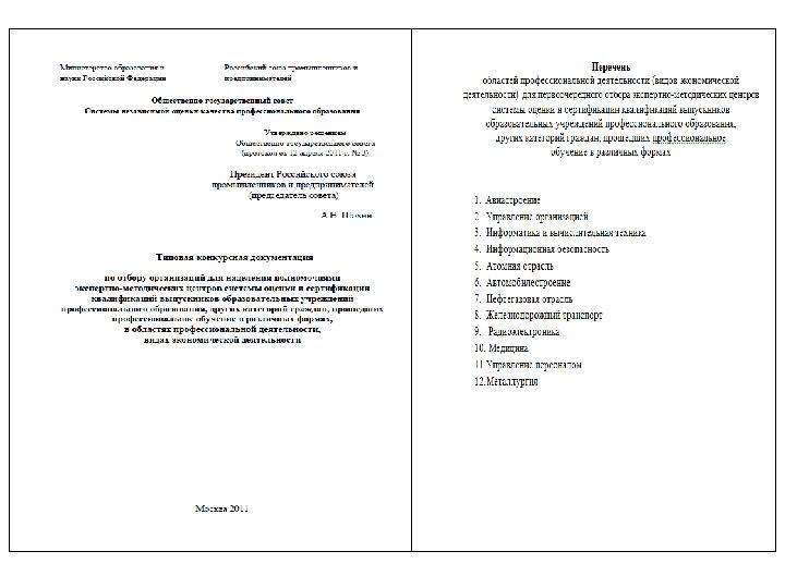 Нормативная база. Иные документы. 3 Перечень Поручений Президента Российской Федерации по итогам совещания по формированию резерва управленческих кадров 23 июля 2008 г. 3 Перечень Поручений Президента Российской Федерации по итогам совещания по вопросам социального положения рабочих и развития профессионально-технического образования, 27 апреля 2011 г. 3 Перечень Поручений, данных Председателем Правительства Российской Федерации В. В. Путиным во время совещания по вопросу «О подготовке квалифицированных рабочих кадров, востребованных в экономике» 23 декабря 2011 г. в г. Санкт – Петербурге 3 Перечень Поручений по реализации положений статьи Председателя Правительства Российской Федерации В. В. Путина «Строительство справедливости. Социальная политика для России» от 13 февраля 2012 г. № ВП -П 12 -1763 от 27 марта 2012 г. 3 Генеральное соглашение между общероссийскими объединениями профсоюзов, общероссийскими объединениями работодателей и Правительством Российской Федерации на 2011 - 2013 годы (заключено 29 декабря 2010 года, протокол N 11 заседания Российской трехсторонней комиссии по регулированию социально-трудовых отношений)