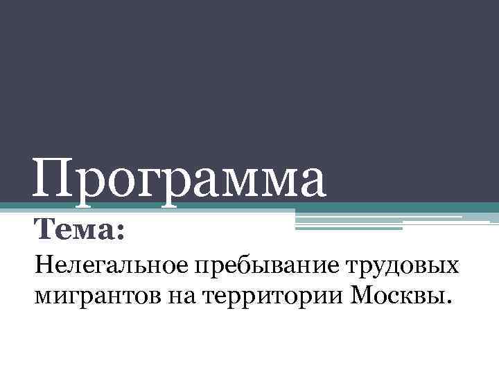 Программа Тема: Нелегальное пребывание трудовых мигрантов на территории Москвы.