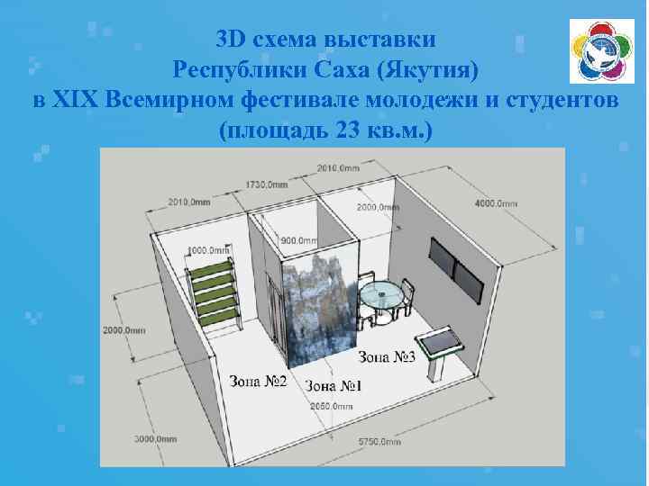 3 D схема выставки Республики Саха (Якутия) в XIX Всемирном фестивале молодежи и студентов (площадь 23 кв. м. )