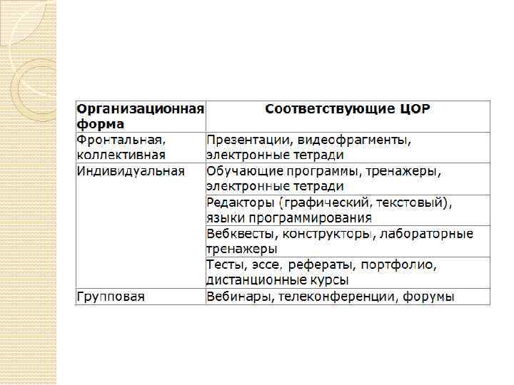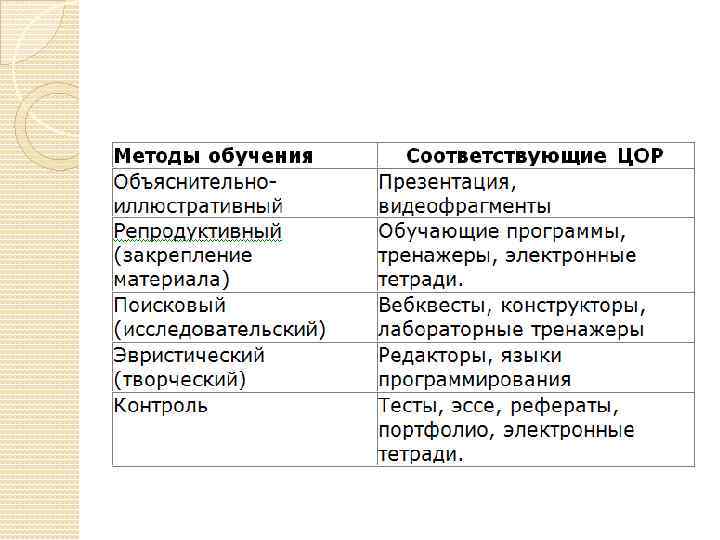 К современным ЦОР выдвигаются следующие требования: Они должны: 1. Соответствовать содержанию учебника 2. Ориентироваться на современные формы обучения. 3. Обеспечивать возможность дифференциации 4. Обеспечивать использование как самостоятельной, так и групповой работы. 5. Содержать варианты учебного планирования. 6. Основываться на достоверных материалах. 7. Превышать по объему соответствующие разделы учебника, не расширяя, при этом, тематические разделы
