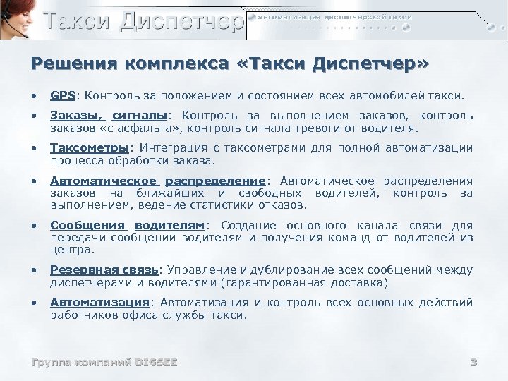 Программно-аппаратный комплекс «Такси Диспетчер» • Группа компаний DIGSEE