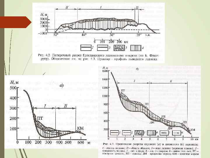 Покровные ледники o Ледниковые купола (мощность до 1000 м) o Ледниковые щиты (мощность > 1000 м) o Выводные ледники (быстро движутся; через них осуществляется основной расход льда покровных ледников) o Шельфовые ледники (плавают или частично опираются на морское дно)