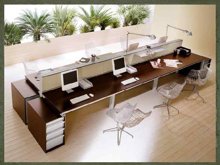 Основные нормируемые значения производственного освещения коэффициент естественной освещенности (КЕО) не ниже 1, 5%; освещенность на поверхности стола в зоне размещения документов должна составлять 300– 500 лк; освещенность экрана должна быть не менее 300 лк; яркость светильников общего освещения должна составлять не более 200 кд/м 2. яркость бликов на экране монитора не превышает 40 кд/м 2; соотношение яркостей рабочих поверхностей должно быть не более чем 3: 1; коэффициент пульсации светильников не должен превышать 5%.