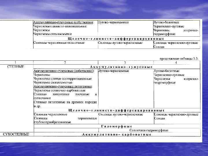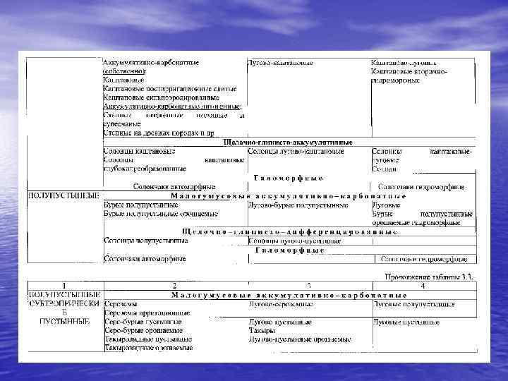 Агроэкологические группы и подгруппы земель средне-русской провинции таежно-лесной зоны 1. 0. Зональные (плакорные) дренированные равнины с автоморфными почвами. Кр<0, 2; П 1 д П 2 д П 3 д ПДог<10%, ПДЭ<10% 2. 0. Эрозионные 2. 1. Слаборасчлененые Кр 0, 2 -0, 5; П 1 д ПДог<10%, ПДЭ 10 -20%. 2. 2. Среднерасчлененные Кр 0, 5 -1; Пд, ПД, ог, г 10 -20%, ПДЭ 20 -50% 2. 3. Сильнорасчлененные Кр 1 -2; Пд, ПД, ог, г 20 -30%, ПДЭ>50% 2. 4. Оченьсильнорасчлененные Кр 2, 0 -3, 0; ПДН, ПД, ог, г ПДЭ>30%. 2. 5. Чрезвычайнорасчлененные Кр>3, 0 3. 0. Полугидроморфно-зональные (слабодренированные равнины) 3. 1. Слабополугидроморфнозональные П 1 д ПДог<50%, Пб. Дг<10% 3. 2. Среднеполугидроморфнозональные П 1 д ПДог<50%, Пб. Дг 10 -20% 3. 3. Сильнополугидроморфнозональные П 1 д ПДог, г, Г<50%, в том числе ПДг, Г >20% 4. 0. Полугидроморфно-эрозионные 5. 0. Полугидроморфные 6. 0. Гидроморфные