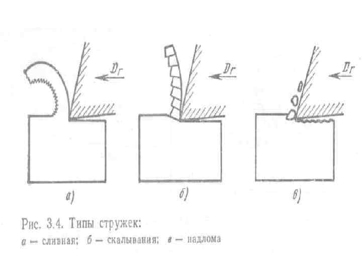 Сливная стружка (рис. 3. 4, а) представляет собой сплошную ленту с гладкой блестящей наружной (прирезцовой) стороной. Внутренняя сторона стружки матовая со слабо выраженными пилообразными зазубринами. Она образуется при резании пластичных материалов с большими скоростями резания, с малой толщиной срезаемого слоя и с большими передними углами инструмента.