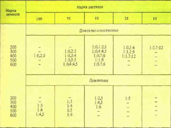 • Составляющие для раствора (вяжущие, песок, вода) дозируют по массе. • Раствор готовят обычно на растворобетонных узлах или заводах, оборудованных дозаторами и смесительными агрегатами. Возможно - непосредственно на стройплощадке. • Для этого устанавливают растворосмеситель, в который составляющие (кроме воды) загружают из тачек. В этом случае дозировку по массе организовать сложно и поэтому применяют дозировку по объему, вымерив вместимость тачек или мерных ящиков. • Насыпная плотность цемента сильно изменяется при его пересыпании, поэтому следует чаще проверять объемную дозировку цемента контрольным взвешиванием. • Для ориентировочного подбора состава растворов по объему составляющих можно пользоваться данными, приведенными в табл. .