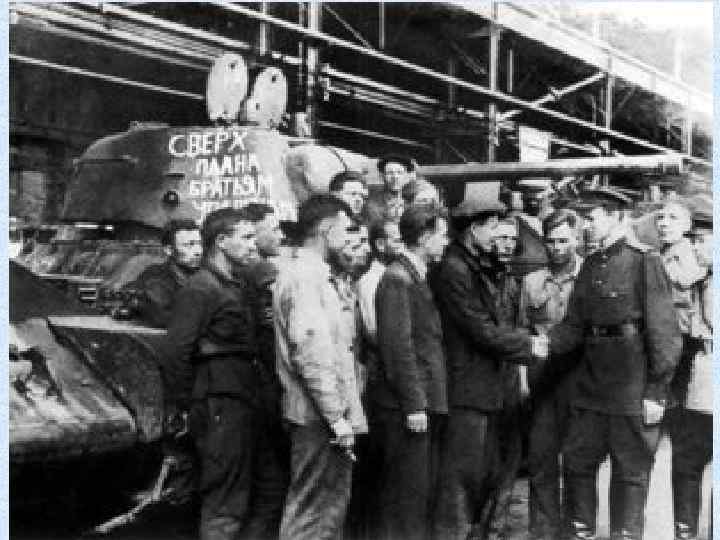 Всего за годы войны выпустили: n n n n n 5000 самоходных артиллерийских установок 732 танк «Т-34» 3219 тяжелых танков 6510 средних танковых корпусов 7100 танковых башен 150 000 артиллерийских орудий 11, 1 млн винтовок и карабинов 213 400 пушек 961 500 пистолетов