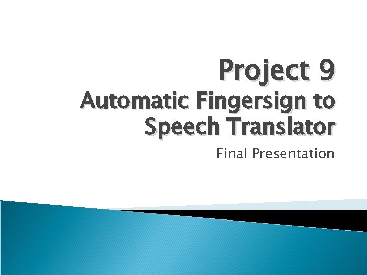 Project 9 Automatic Fingersign to Speech Translator Final Presentation