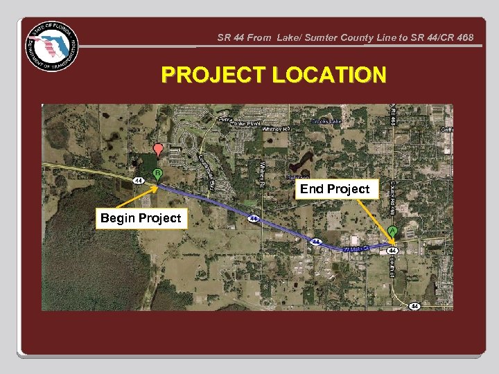 SR 44 From Lake/ Sumter County Line to SR 44/CR 468 PROJECT LOCATION End Project Begin Project