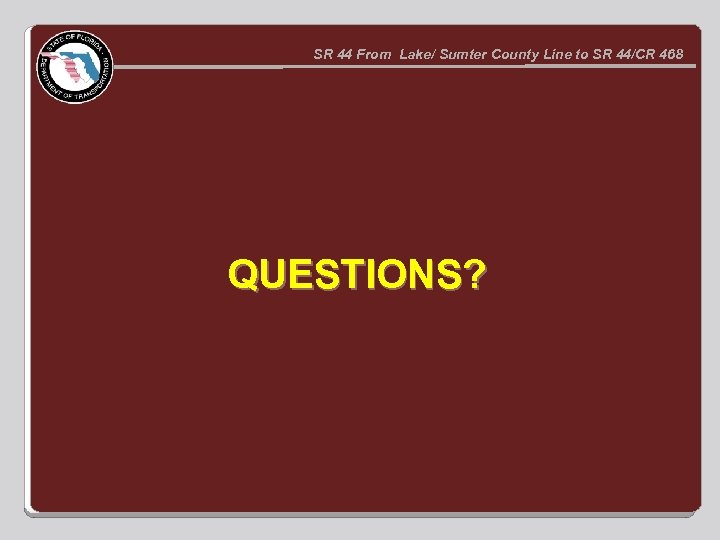 SR 44 From Lake/ Sumter County Line to SR 44/CR 468 QUESTIONS?