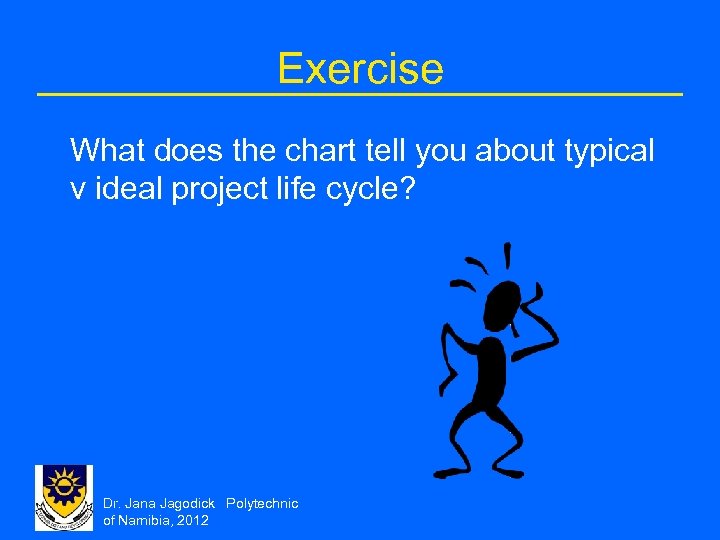 Exercise What does the chart tell you about typical v ideal project life cycle? Dr. Jana Jagodick Polytechnic of Namibia, 2012