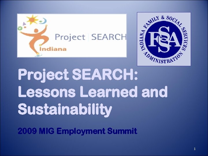 Project SEARCH: Lessons Learned and Sustainability 2009 MIG Employment Summit 1