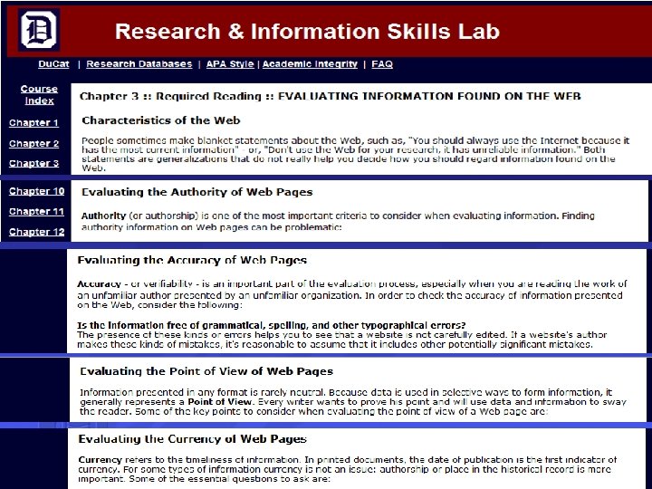 Info Literacy Dimensions • Framing the Research Question • Accessing & Evaluating Sources • Evaluating Content • Using Info for a Specific Purpose • Using Information Responsibly Source: http: //www. msche. org/publications/Developing-Skills 080111151714. pdf