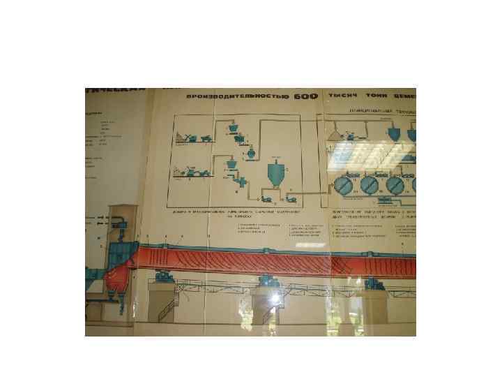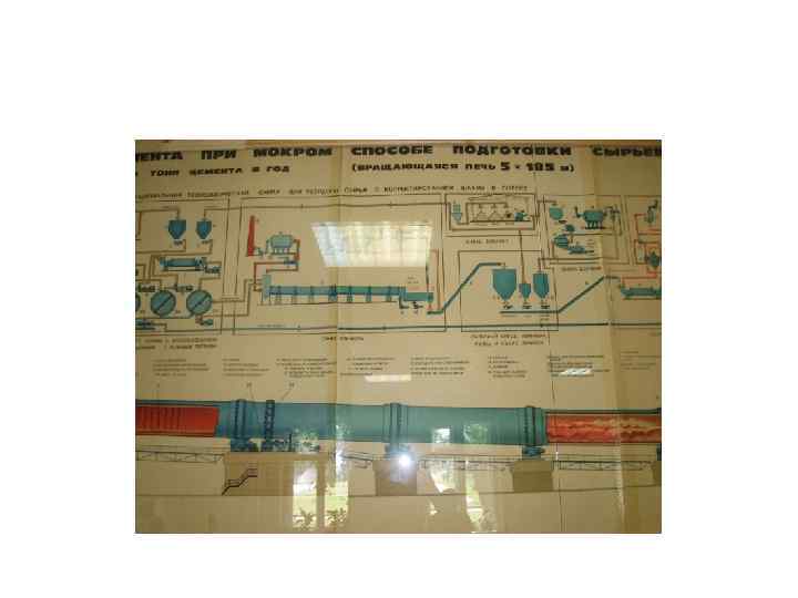 ПОДГОТОВИТЕЛЬНАЯ: I. Измельчение 78% мела +18 -19% глина + ост. добавки II. Получение однородной смеси: мельница гидрофол 7 м в диаметре, добавляется вода (техническая после охлаждения подшипников, теплая). Смесь похожа на строительный раствор