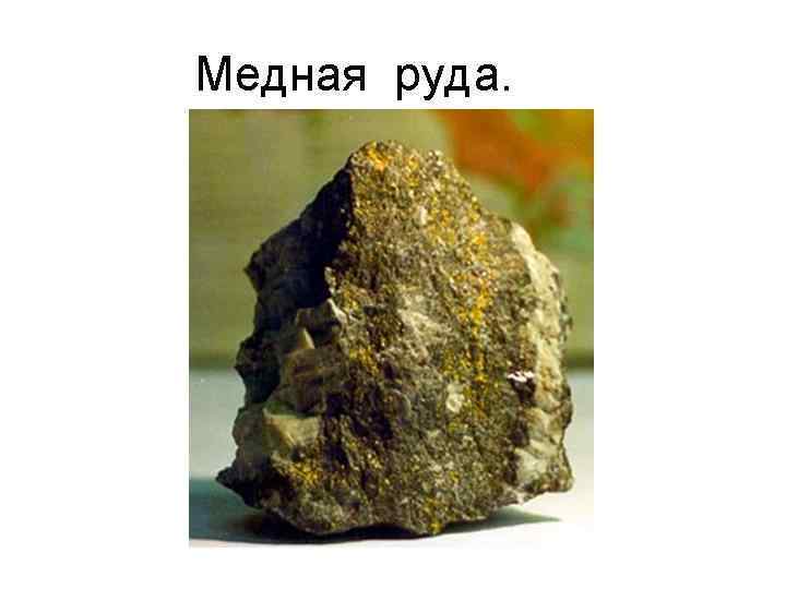 ТИПЫ МЕДНЫХ РУД n n n Медь добывается как из собственно медных, так и из комплексных руд. Почти 80% ежегодной мировой добычи меди осуществляется из сульфидных руд и концентратов. Около 20% металла извлекают из карбонатов, оксидов, силикатов и самородной меди. К богатым относятся руды с содержанием меди более 2%, руды среднего качества содержат от 1 до 2% меди, бедные — от 0, 7 до 1 %, весьма бедные — менее 0, 7%. Коэффициент концентрации меди в месторождениях 200. Главные минералы медных руд: халькопирит Cu. Fe. S 2 (34, 5% Сu), борнит Cu 5 Fe. S 4 (63, 3), халькозин Cu 2 S (79, 8), ковеллин Cu. S (66, 5), кубанит Cu. Fe 2 S 3 (22— 24), теннантит 3 Cu 2 S·As 2 S 3 (57, 5), тетраэдрит 3 Cu 2 S·Sb 2 S 3 (52, 3), куприт Сu 2 О (88, 8), тенорит Сu. О (79, 9), малахит Сu(СОз) • Сu(ОН)2 (57, 4), азурит 2 Сu(СО)3 • Сu(ОН)2 (55, 3), хризоколла Cu 4[Si 4 O 10] (ОН)2 • 4 Н 2 O (36, 0).