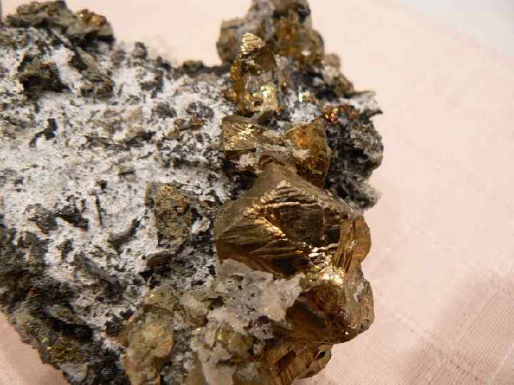 n n n Морфология залежей Cu колчеданных руд определяется в слабо преобразованных месторождениях формой депрессионной структуры, в которой происходило рудоотложение, а в преобразованных — теми последующими изменениями (складчатостью, разрывными деформациями, региональным и контактовым метаморфизмом), которым позднее подверглись рудные тела и вмещающие их породы. Минеральный состав Cu колчеданных руд относительно простой: резко преобладает пирит (90— 95%), в меньших количествах присутствует халькопирит и сфалерит (5— 10%), второстепенными являются борнит, галенит и др. Нерудные в подчиненном количестве представлены кварцем, серицитом, хлоритом, карбонатами. Текстура руд чаще массивная, иногда полосчатая, по краям рудных залежей появляется брекчиевая и вкрапленная. Для руд характерны минеральные парагенезисы, последовательно сменяющие друга: 1) пиритовый; 2) халькопиритовый (или борнит пиритовый); 3) халькопирит сфалерит пиритовый.