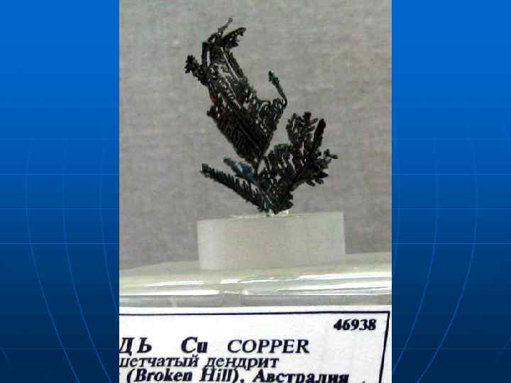 МЕДНОРУДНЫЕ ФОРМАЦИИ n n Самородной меди (медно-цеолитовая). Месторождения приурочены к древним лавовым покровам (миндалекаменным порфиритам) и пластам конгломератов в мощных вулканогенных и вулканогенно осадочных толщах. Самородная медь с примесью халькозина, самородного серебра вместе с хлоритом, кальцитом, эпидотом, цеолитами выполняет мин далины в ффузивах, поры в цементе брекчий и эффузивах э конгломератов. Рудные тела подчинены напластованию лавовых покровов (обычно в самых верхних частях потоков) и осадочных пород. Примеры: оз. Верхнее (США), месторождение Тайметское в Горной Шории (Россия).