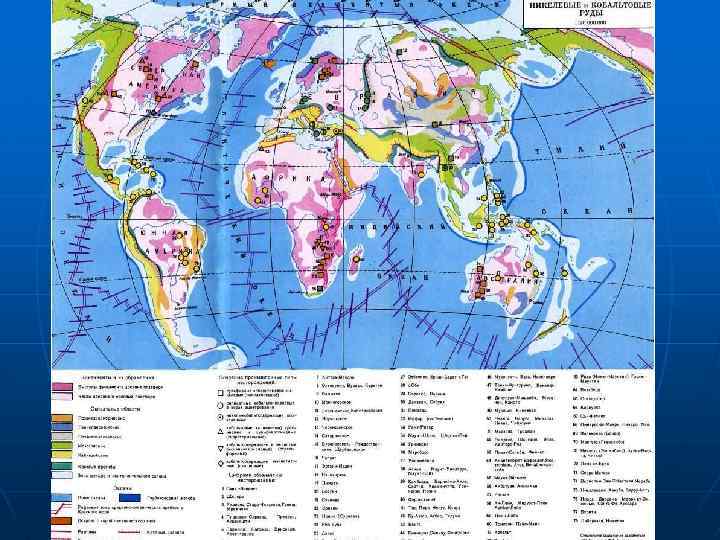 ГЕОЛОГО-ПРОМЫШЛЕННЫЕ ТИПЫ МЕСТОРОЖДЕНИЙ НИКЕЛЕВЫХ РУД n n Промышленные концентрации Ni представлены двумя основными типами месторождений: а) магматическими сульфидными медно никелевыми (28% мировых запасов и свыше 60% мировой добычи); б) гипергенными месторождениями силикатных никелевых руд кор выветривания (71% запасов и 39% добычи). Из месторождений других типов получают менее 1 % никелевых руд. Месторождения считаются очень крупными, если содержат никеля более 500 тыс. т, крупными — 500— 200 тыс. т, мелкими — менее 100 тыс. т.