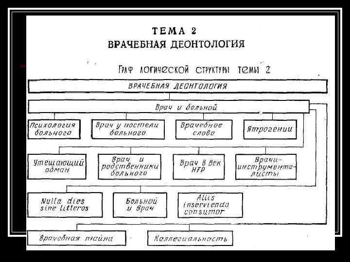 о взаимоотношениях между врачами n Можно только сожалеть, если врач говорит больному, который до этого лечился у другого врача: «Вас не так лечили» , или «У вас совсем другая болезнь» , или еще: «И зачем только вас оперировали» и т. д. Высококультурный врач не позволит себе подобных выражений. Не говоря уже о неэтичности их, такие разговоры приносят огромный вред самому больному. Медицина не относится к разряду точных наук. В решении задач диагностики, лечения, профилактики и т. д. при одной и той же болезни медицина предлагает множество путей, не редко прямо противоположных другу. По одному и тому же вопросу можно найти несколько различных мнений. По этому врач должен проявлять разумную терпимость к мне нию другого врача, своего коллеги.