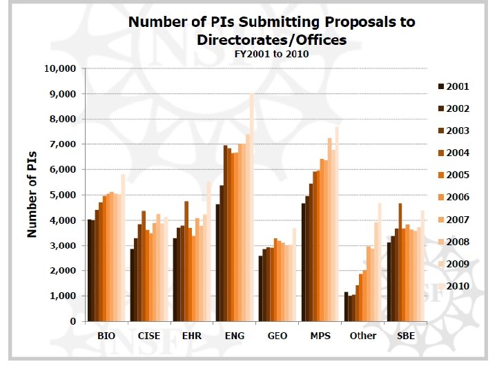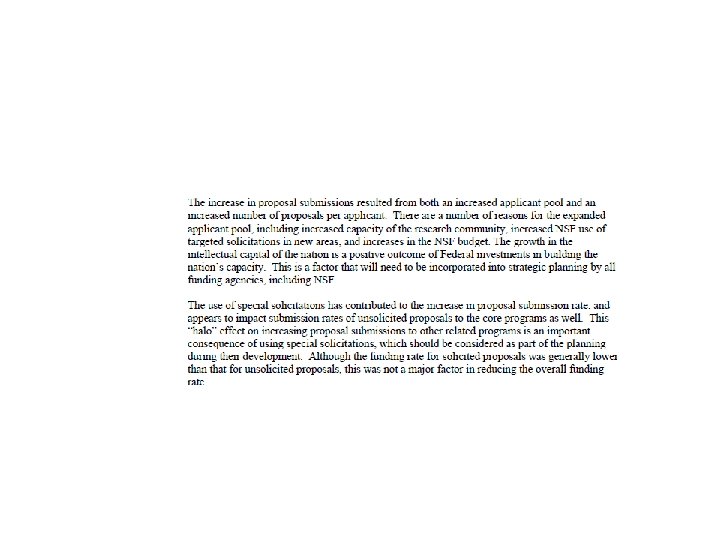 Increase in Submissions and Decrease in Funding Rates Due to: > applicant pool > # proposals/ applicant – special solicitations