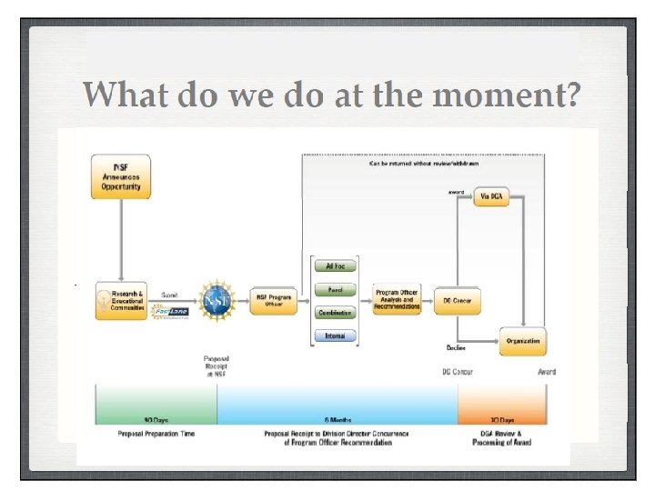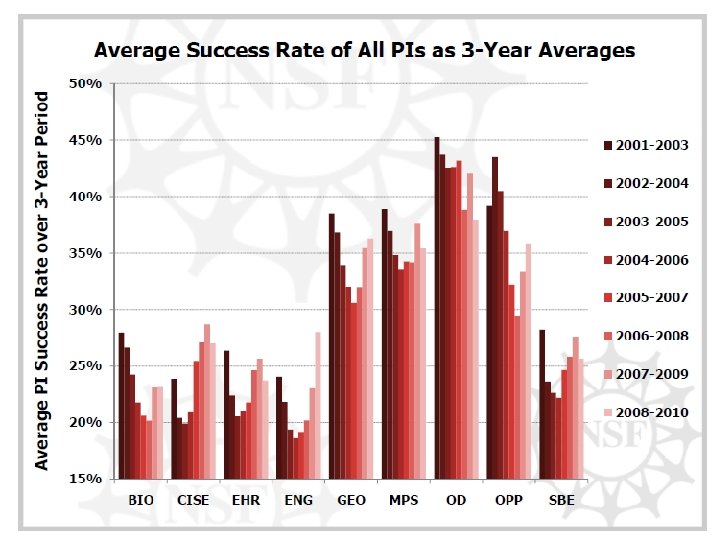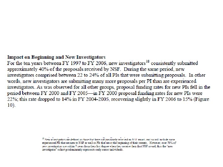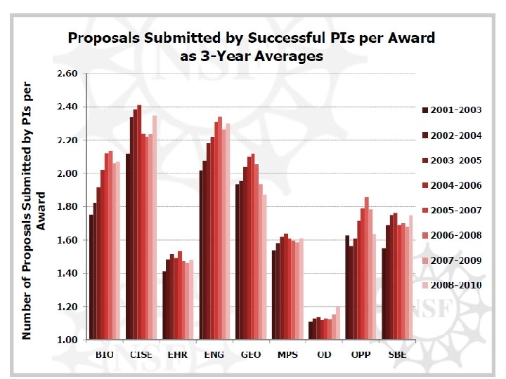 Conclusions • Big differences between directorates – And differences in recent trends • Rejection is the norm – especially for early career applicants • Communicate with PO on how to follow up on rejected proposals – EAGER? RAPID? – Workshop? • Offer to peer review, serve on panels • Identify “transformative” aspects of your proposed activities