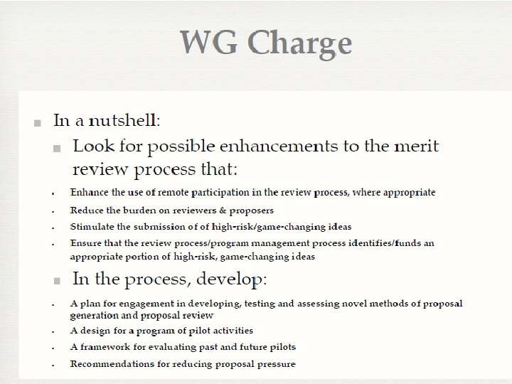 MRPAC Recommendations for Pilot Experiments Potential Pilot Score PI response to reviews prior to decision B Return non-competitive proposals C Wiki-based reviews A Increased use of virtual panels A Increased use of ad hoc reviews B More use of preliminary proposals B Double-blind review C Prizes C