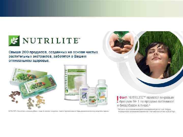 Преимущества продукции Amway § Собственное производство § Передовые технологии – 65 исследовательских лабораторий и более 700 научных сотрудников и технических специалистов по всему миру § Собственные органические фермы § Более 1000 действующих патентов, около 900 патентов в стадии регистрации § Более 500 000 тестов контроля качества ежегодно § Гарантия качества Amway