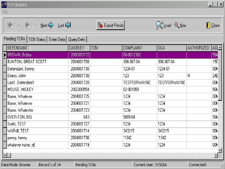 PACC PAAM w TCN Update Screens w Pending TCN Screen w. Gives information on cases that DO NOT have charges entered w TCN Status Screen w. Gives the status code of each defendant w. Status code sheet w Enter Data Screen w. Actual data is updated/edited w. Incident number field (Incident number as on card) w. Authorized Field /Share Data Field must always be an “A”