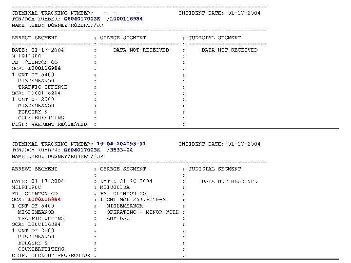 RECEIVE NOTIFICATION w E-mail notification available for ID Networks Agencies w Sends e-mail message to Prosecutor for each livescan transaction w Copy of Criminal History Record with current arrest w Gives prosecutor notification of arrest and TCN/OCA information w Use this in place of print card w Criminal History Record automatically prints at PA’s Office w PA must have LEIN Terminal or access to LEIN w Livescan agency specifies “send copy to” field with PA’s ORI w Serves purpose of notifying PA of arrest and prints copy of CCH
