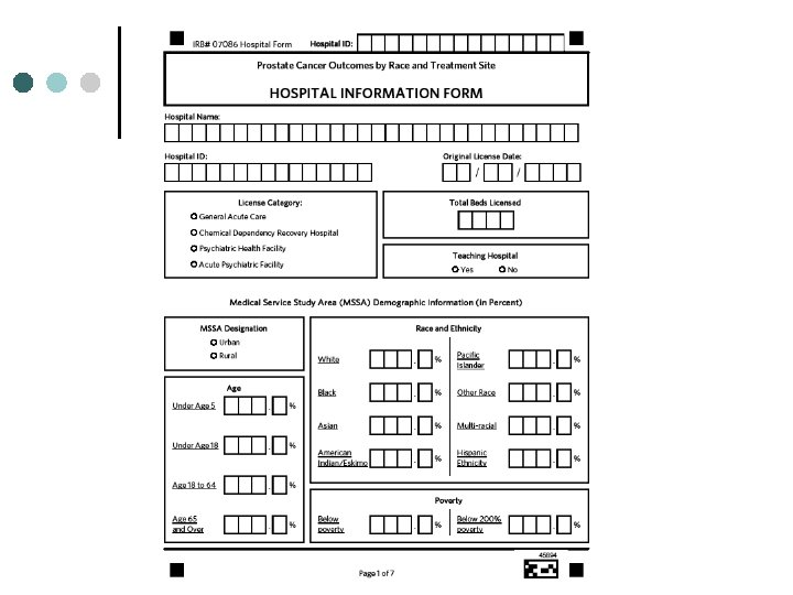Data Sources ¢ Los Angeles Cancer Surveillance Program (CSP) l l ¢ White or African-American Diagnosed with prostate cancer 1998 -2003 NCI-designated Cancer Center l ¢ USC-Norris Cancer Center, UCLA-Jonsson Cancer Center, City of Hope Cancer Center Office of State Health Planning Department (OSHPD): l Teaching status l Bed Size l Average length of stay l Urban vs. Rural l Hospital in-patient racial distribution l MSSA: % below poverty, racial distribution