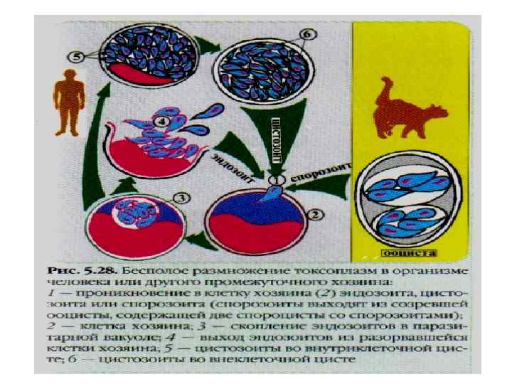 Тип – APICOMPLEXA, класс – sporozoa (споровики) представители болезни Плазмодии малярии: Plasmodium vivax Plasmodium ovale Plasmodium malariae Plasmodium falciparum Токсоплазмы: Toxoplasma gondii Трехдневная малярия (ovale) Четырехдневная малярия Тропическая малярия Токсоплазмоз Саркоцисты: Sarcocystis spp. Саркоцистоз Изоспоры: Isospora spp. Диарея Криптоспоридии: Cryptospodium spp. Диарея Циклоспоры: Cyclospora cauetanensis Диарея Бабезии: Babesia spp. Бабезиоз