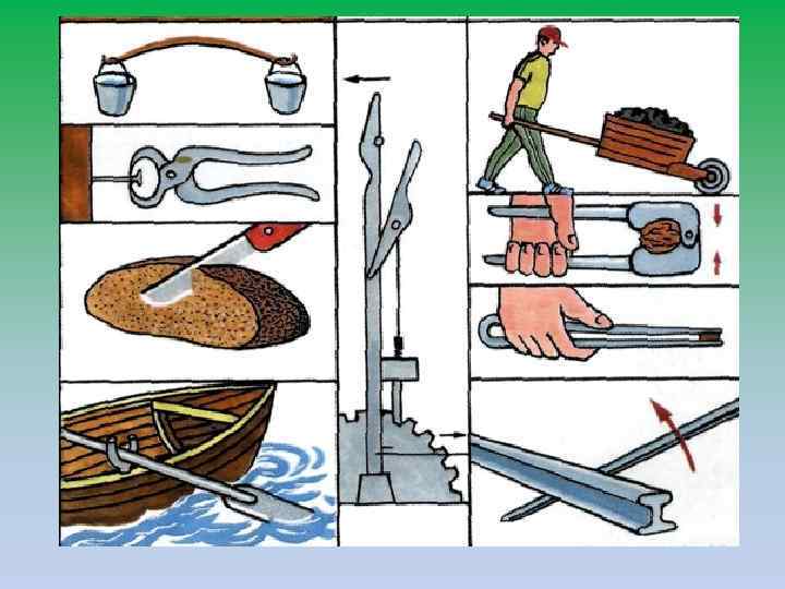 Механізми – пристрої для перетворення руху й сили. Прості механізми: - колесо, - важіль, - блоки (нерухомий і рухомий), - гвинт, - клин, - похила площина.
