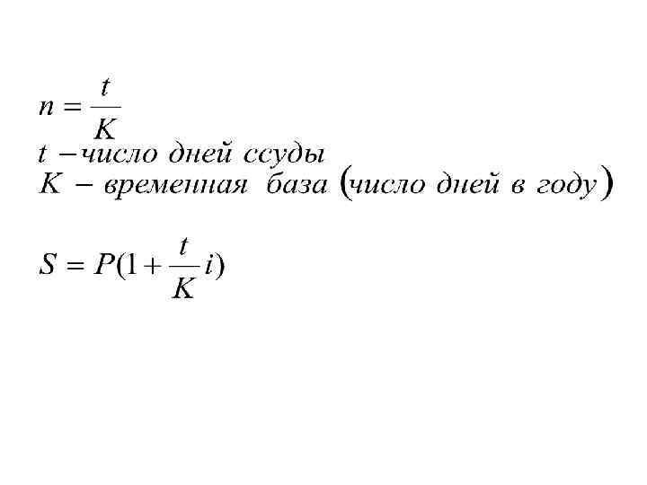 Проценты (процентные деньги) – абсолютная величина дохода от предоставления денег в долг в любой его форме ( I ). Процентная ставка – относительная величина дохода за фиксированный период времени, отношение процентов к сумме долга ( i ). Срок начисления – временной интервал финансовой операции ( n ). Период начисления – временной интервал, к которому приурочена процентная ставка. Наращенная сумма долга (S) – первоначальная сумма (P) вместе с начисленными процентами.
