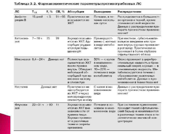 Амфотерицин Б Показания: 1) тяжелый кандидоз 2) тяжелые формы системных микозов (криптококкоз, гистоплазмоз, аспергилез, бластомикоз)