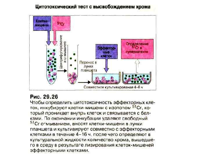 Методы диагностики • Реакция клеточной цитотоксичности. При совместном культивировании лимфоцитов реципиента (отвечающих клеток) и отличающихся от них по антигенам HLA класса II стимулирующих клеток среди отвечающих клеток появляются цитотксические Т-лимфоциты. Они способны разрушать клеткимишени, несущие антигены, которые присутствуют на стимулирующих клетках. • Изучение клеточной цитотоксичности в смешанной культуре лимфоцитов в ряде случаев позволяет предсказать, будет трансплантат стимулировать образование цитотоксических Тлимфоцитов или нет. • Для этого готовится смешанная культура лимфоцитов, где отвечающими клетками служат лимфоциты реципиента, а стимулирующими - инактивированные лимфоциты донора. • После 6 суток инкубации смешанной культуре лимфоцитов к отвечающим клеткам добавляют свежие клетки того же донора, меченные 51 Cr.