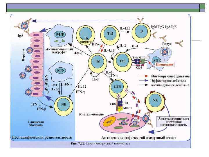 Противовирусный иммунитет o o При острых инфекциях с коротким периодом инкубации, высокой скоростью репродукции основная защита осуществляется факторами врожденного иммунитета. При продолжительной инфекции, генерализованной инфекции, на более поздних стадиях основная роль принадлежит адаптивному иммунитету.