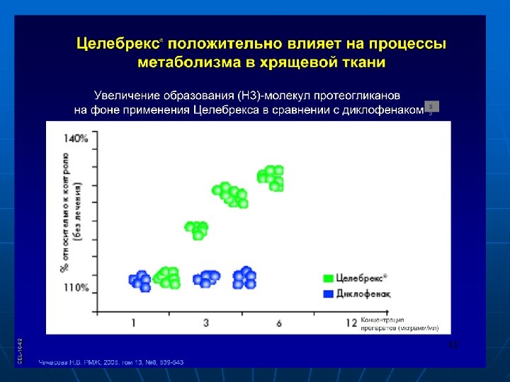 Целебрекс оказывает лечебное действие на суставы 2 2 Целебрекс в сравнительных исследованиях с другими НПВП (в частности, с Диклофенаком): n Увеличивал число специализированных молекул (протеогликанов), участвующих в метаболизме хрящевой ткани n Увеличивал число вновь синтезированных молекул гиалуроновой кислоты n Замедлял разрушение молекул, участвующих в синтезе гиалуроновой кислоты Чичасова Н. В. Эффективность нестероидных противовоспалительных препаратов в клинической практике. Русский медицинский журнал, 2006: Том 14, № 25: стр. 539 -543 CEL-10 -02